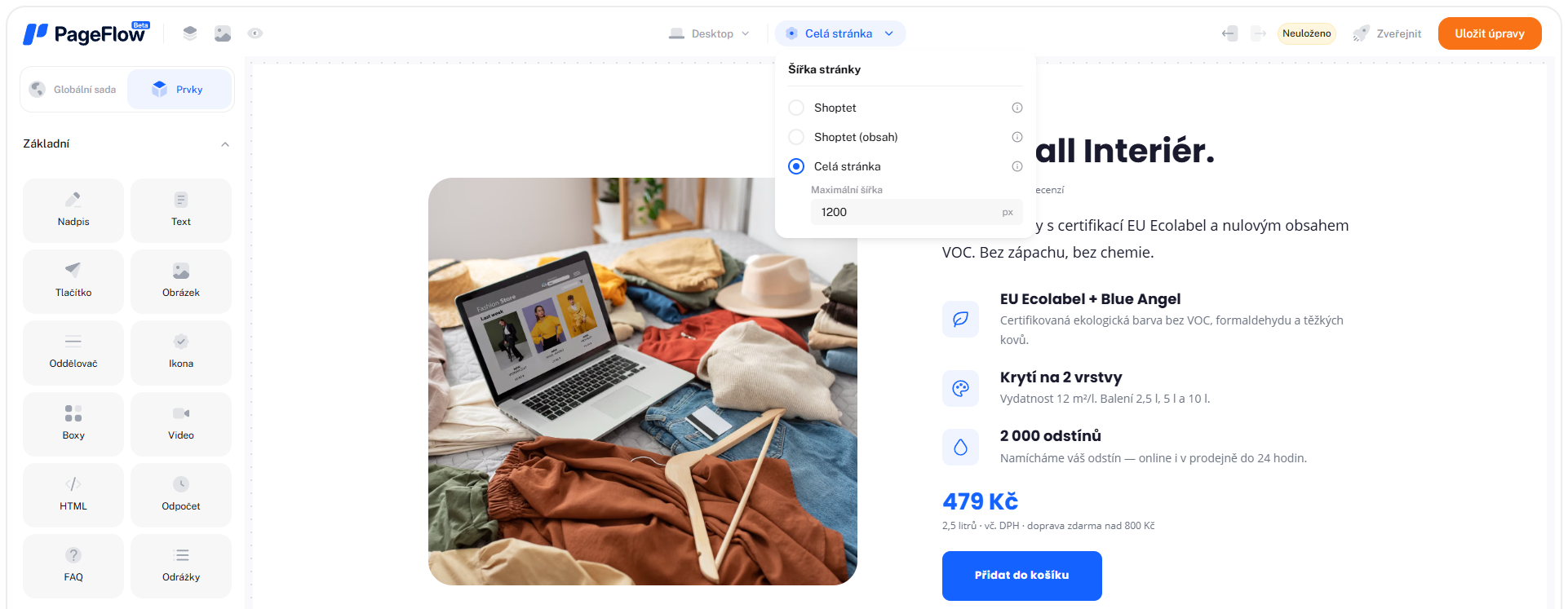 Globální sada je balíček přednastavených barev, fontů, tlačítek a dalších prvků, díky kterému máte design pod kontrolou bez zdlouhavého ladění. Všechno je připravené – stačí si jen vybrat a tvořit. Sáhněte po hotových sadách, nebo si vytvořte vlastní a udržte jednotný, profesionální vzhled napříč vším, co v PageFlow vytvoříte.